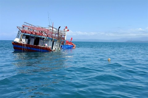 | Un bateau abandonné au large de la forêt de Daintree, en Australie, le 27 août (transmise par les secours de Port Douglas). |