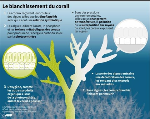 Canberra fait valoir qu'il s'est engagé à réduire ses émissions de 26 à 28% d'ici 2030 par rapport aux niveaux de 2005. Le blanchissement est un phénomène de dépérissement qui se traduit par une décoloration des coraux. Sous la pression de facteurs comme le réchauffement, les coraux stressés expulsent les algues avec lesquelles ils ont une relation symbiotique, et qui leur donnent couleur et énergie.