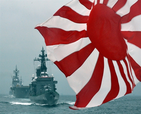 | Un navire japonais lors d'un exercice au large de la baie de Sagami. |