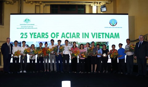 | Des paysans vietnamiens honorés par l’ACIAR lors de la cérémonie de célébration des 25 ans de ce centre au Vietnam, le 11 avril à Hanoï. |