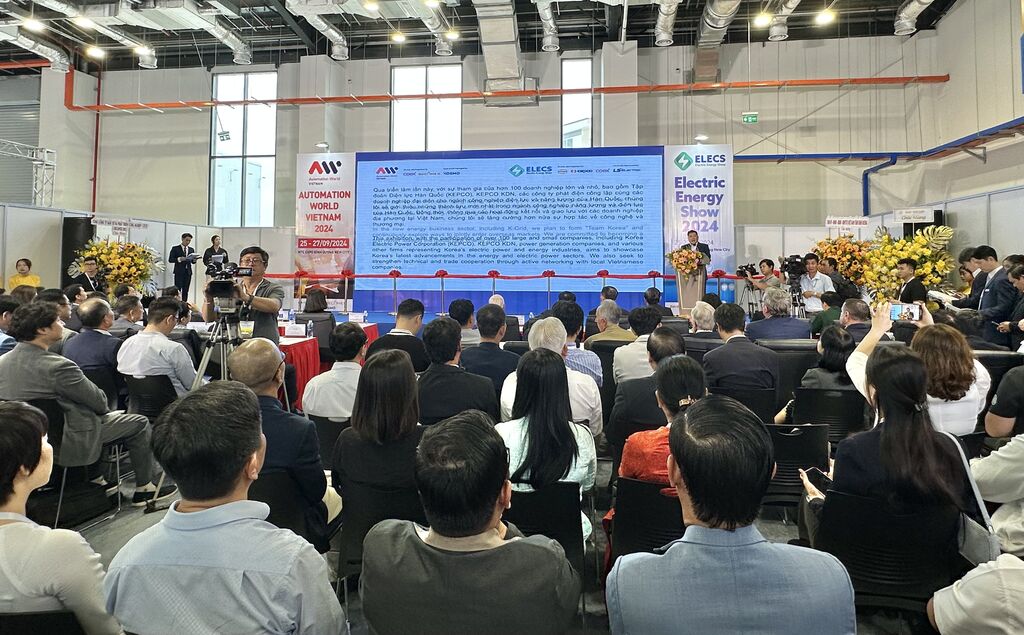 | Cérémonie d’ouverture des expositions internationales “Automation World Vietnam & ELECS 2024”, tenue mercredi 25 septembre dans la province de Binh Duong (Sud). |