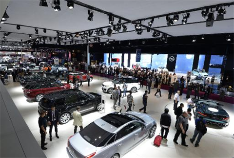 | Vue générale de différents modèles de constructeurs français au salon de l'automobile à Paris le 3 octobre 2014. |