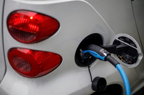 | Une voiture électrique en charge dans une station à Berlin, le 28 février. |