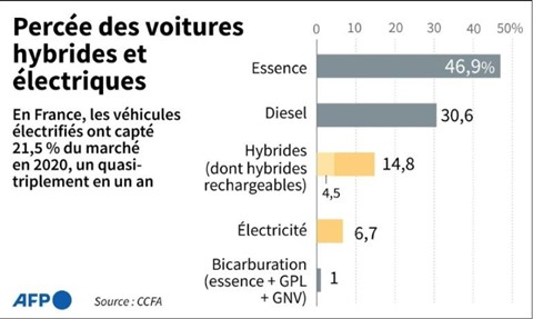 En 2020, "le nombre de véhicules électriques sur nos routes a doublé pour atteindre plus de deux millions", si bien que "l'objectif de l'UE de créer un point de recharge public pour dix voitures électriques se rapproche". "Mais étant donné que bon nombre des 220.000 points de recharge sont concentrés dans quelques zones, nous devons encore accélérer l'expansion à travers l'UE", plaident les auteurs.