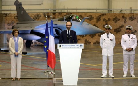 "Si nous vivions dans un monde parfait, je serais venu avec l'ensemble de la nation française", a affirmé M. Philippe dans un discours prononcé face à 200 militaires et au pied de deux avions de combat Rafale.