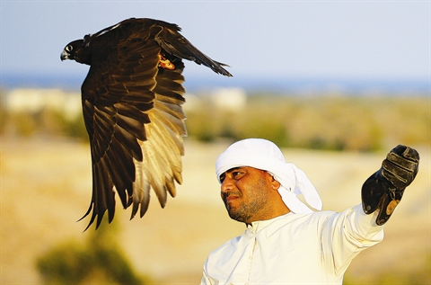 | Un faucon prend son envol sur l’île de Sir Bani Yas. |