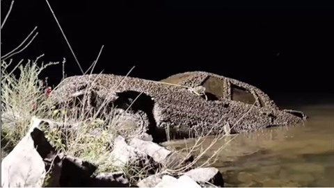 | Capture d'écran d'une vidéo du youtubeur et plongeur Jeremy Sides montrant un véhicule sorti de l'eau en relation avec une affaire de disparition dans le Tennessee. |