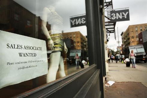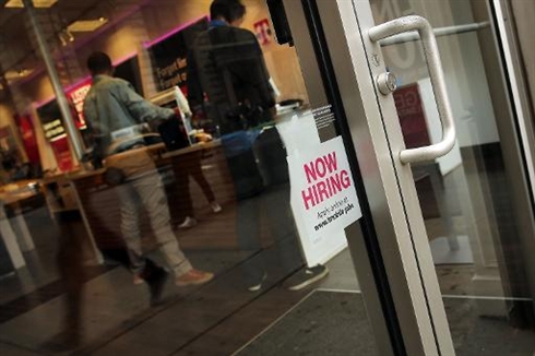| Une offre d'emploi est affichée sur un magasin à New York, le 2 octobre |