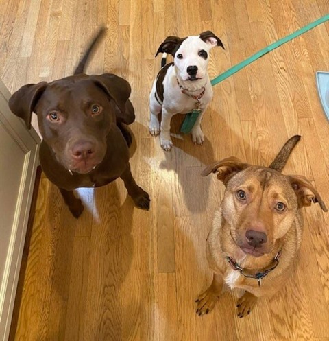 | Photo fournie par Mila bartos montrant ses chiennes Maisie, Mabel et Natty. |