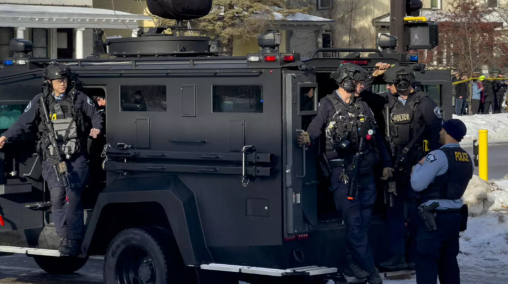| Des agents de police arrivent à Minneapolis, le 7 janvier 2026, où un policier de l'immigration a tué une femme lors d'une opération. |
