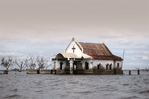 | Une chapelle au milieu des eaux de la baie de Sitio Pariahan, à Bulacan (Philippines). |