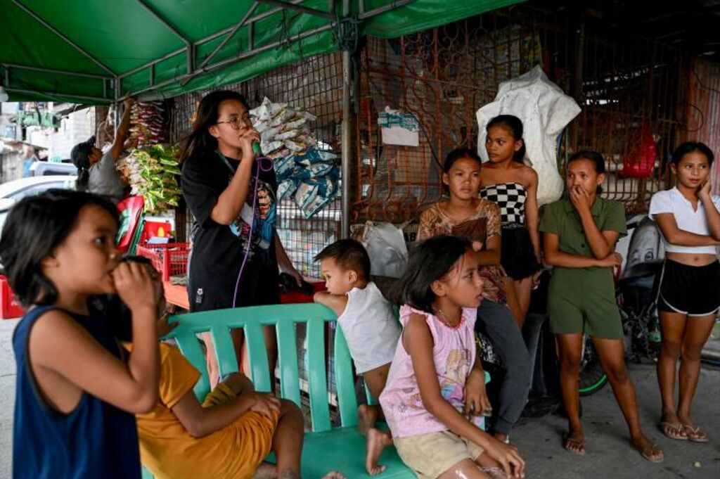 Ce loisir est l'un des rares divertissements abordables pour de nombreux Philippins, à l'instar d'enfants et des jeunes rassemblés devant un petit magasin d'un quartier difficile de Manille, dont la machine à karaoké est très prisée.