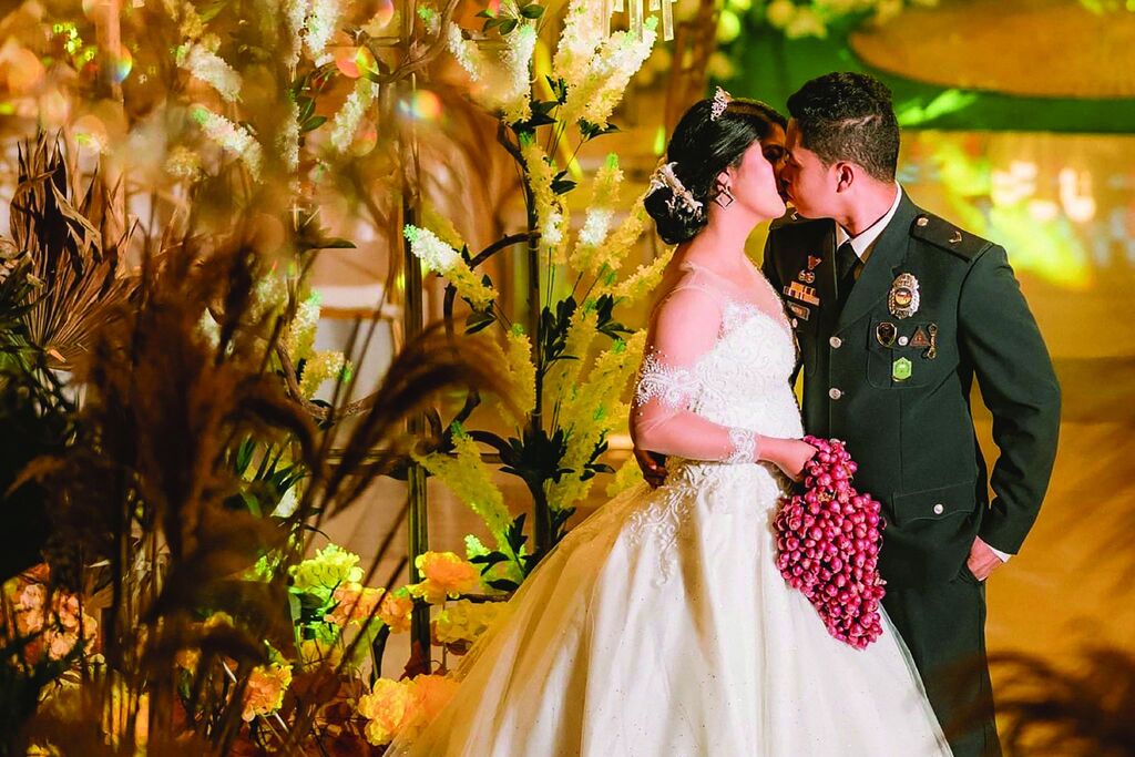 | Une mariée utilisant une botte d'oignons en guise de bouquet de fleurs, dans la ville de Iloilo aux Philippines. |