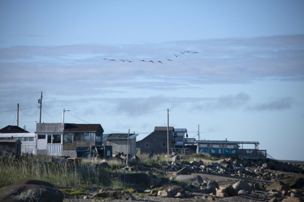 À Churchill, entre la gare proprette et les graffitis géants d’ours polaires, de nombreuses maisons sont délabrées, rafistolées à la hâte. Parfois, ce sont de simples préfabriqués posés sur des parpaings, semblant peu adaptés aux températures hivernales qui atteignent souvent les -40° Celcius.