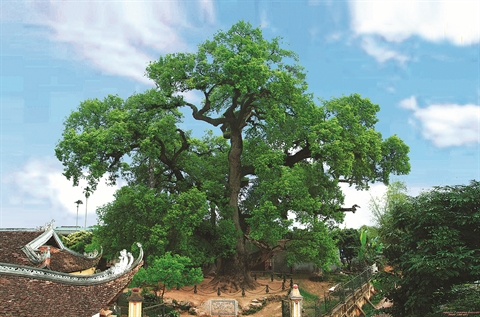 | Le camphrier millénaire dans la commune de Tiên Luc, province de Bac Giang, planté juste à côté d’une maison commune. |