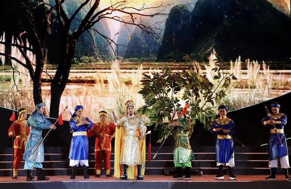 Cette prestation met en valeur la culture artistique folklorique. Elle célèbre l’esprit martial tout en créant une ambiance énergique et festive pour accueillir la nouvelle année. Vu Manh Linh, acteur au Théâtre de tuông du Vietnam, y participe.