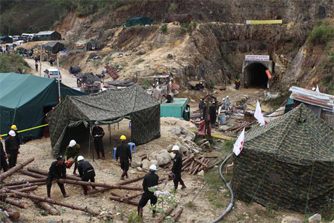 | Les secours se poursuivent pour extirper les 12 ouvriers bloqués par l'effondrement d'un tunnel. Photo : Duong Giang/VNA/CVN |