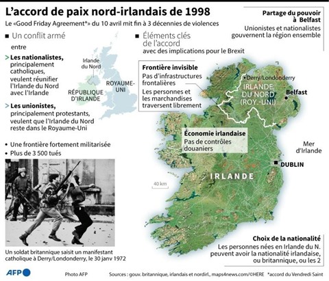L'accord dit du Vendredi saint de 1998, obtenu avec l'implication de l'ancien président américain Bill Clinton, avait mis un terme aux violences entre républicains catholiques et unionistes protestants qui avaient fait quelque 3.500 morts en 30 ans de conflit en Irlande du Nord.