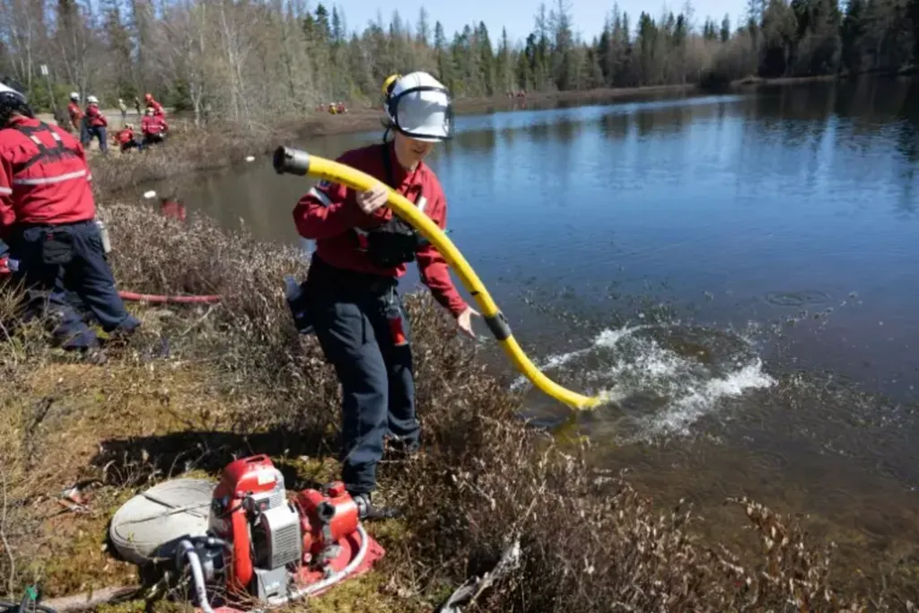Pour maîtriser les techniques de combat du feu et le maniement de l'équipement (systèmes de pompe, lances...), il a suivi une semaine de formation près de la ville de Québec début mai, à laquelle l'AFP a assisté.