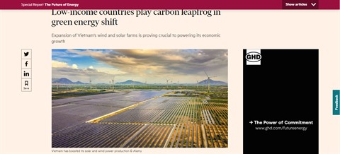 Tout comme les rivières brésiliennes fournissent de l'énergie hydroélectrique, ou des ruptures de la croûte terrestre fournissent de l'énergie géothermique à l'Indonésie, le Vietnam s'attend également à ce que l’ensoleillement abondant et un littoral peu profond fourniront une énergie propre, stimulant ainsi sa croissance économique.