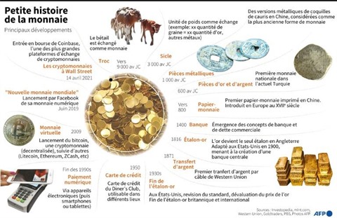 | Principaux développements de l'histoire de la monnaie. |