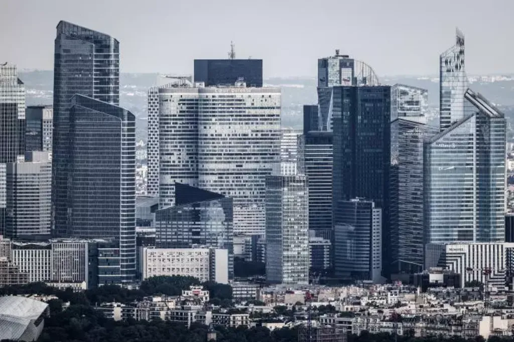 | Photo du quartier de La Défense prise depuis la Tour Montparnasse à Paris. |