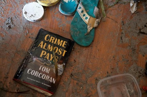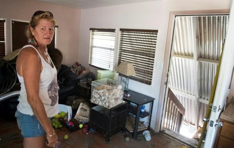 "Ça c'était mon porche", rigole-t-elle nerveusement devant un amas de débris. Sur la plage voisine, au milieu du sable et des branches, des débris de tout genre se sont entassés : radios, matelas, vêtements et même un jet-ski.