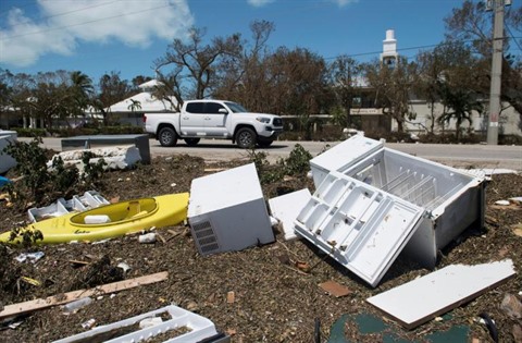 | Des objets endommagés après le passage de l'ouragan Irma à Islamorada, en Floride, le 12 septembre |