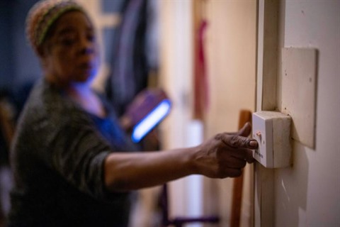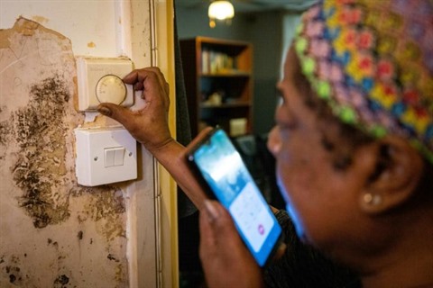 | Doreen Thompson ajuste le thermostat de son appartement, dans le sud de Londres, le 3 novembre. |
