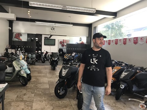 Après un coup d'arrêt initial lié au confinement, le magasin, qui vend essentiellement des modèles des Taïwanais SYM et Kymco, ne désemplit plus, au point que le stock est à peine suffisant.