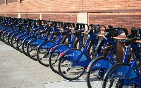 | Des vélos en partage du réseau Citi Bikes en avril 2020 à New York. |