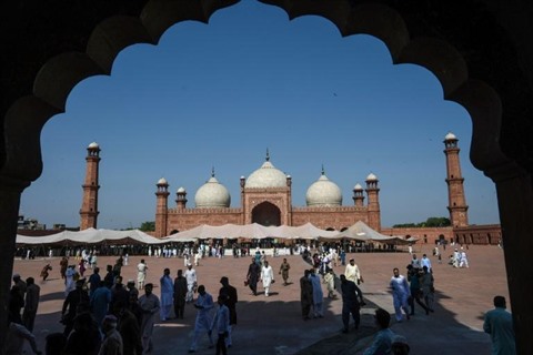Des musulmans partent de la mosquée Badshahi à Lahore au Pakistan, lors de l'Aïd el-Fitr, le 24 mai. Photo : AFP/VNA/CVN |