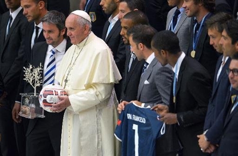 Dans l'après-midi, le pape avait exalté devant eux au Vatican "une culture de la rencontre" et des "valeurs universelles", transcendant religions et différences et qui se retrouvent dans le foot.