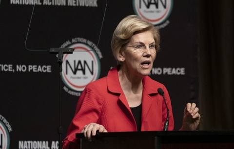 | Elizabeth Warren, sénatrice du Massachusetts, le 5 avril 2019 à New York. |