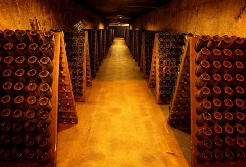 | Des bouteilles de champagne stockées sous l'avenue de Champagne à Epernay, le 13 décembre. |