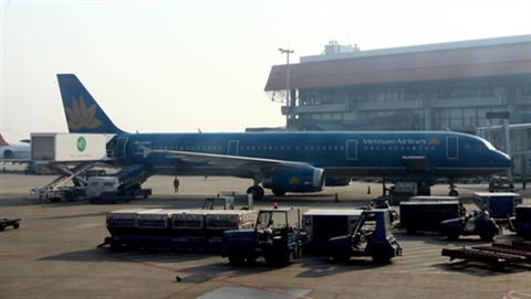 | Un avion de Vietnam Airlines s'apprête à prendre son envol à l'aéroport international de Nôi Bài. |
