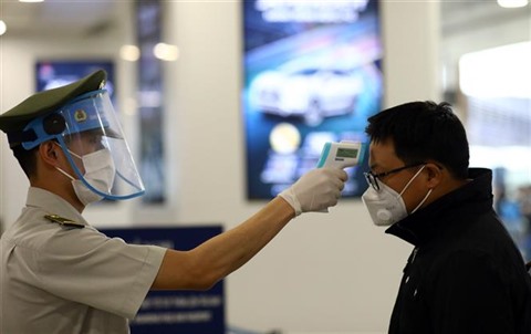 | Vérifier la température corporelle des passagers à l'aéroport de Nôi Bài, à Hanoï. |