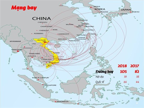 Selon les données de Vietjet et de l’Aviation civile du Vietnam, en 2018, ce transporteur aérien a effectué 118.201 vols, soit une augmentation de plus de 21.000 vols, dont 34.990 internationaux, en hausse de 56,25% par rapport à 2017. Cette croissance a dépassé la moyenne de l’ensemble du secteur aérien qui n'a atteint que 9% ainsi que celle de ses concurrents. Plus précisément, en 2018, les autres compagnies aériennes au Vietnam n'ont fait qu’une hausse cumulée de plus de 4.000 vols.