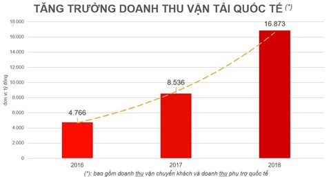 Vietjet connaît une forte progression sur le marché international. S’il y a cinq ans, elle n'atteignait que 178 milliards de dôngs de recettes de transport international de passagers, ce chiffre a été passé à 802 milliards en 2016. Toutefois, au cours de ces deux dernières années, ses recettes internationales ont augmenté de façon exponentielle. En 2018, ses recettes du transport international de passagers ont presque doublé par rapport à 2017, soit 24.681 milliards de dôngs. D’ailleurs, la vente de souvenirs, de produits alimentaires, de services ajoutés, la publicité dans les avions, etc. rapportent aussi des bénéfices élevés qui ont atteint 8,110 milliards de dôngs, soit 53,5% en glissement annuel.
