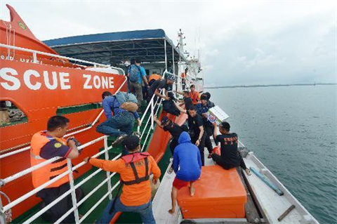 | Des membres de l'équipe de sauvetage indonésienne s'apprêtent à récupérer des corps et des débris de l'avion d'AirAsia, le 30 décembre en mer de Java (Indonésie). |