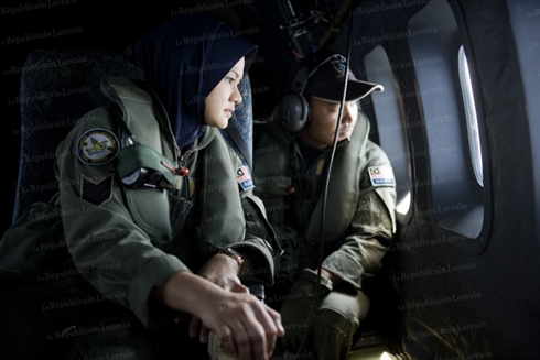 | Des membres de forces armées malaisiennes scrutant les eaux du détroit de Malacca, que l’avion disparu a survolé. Photo : AFP/VNA/CVN |