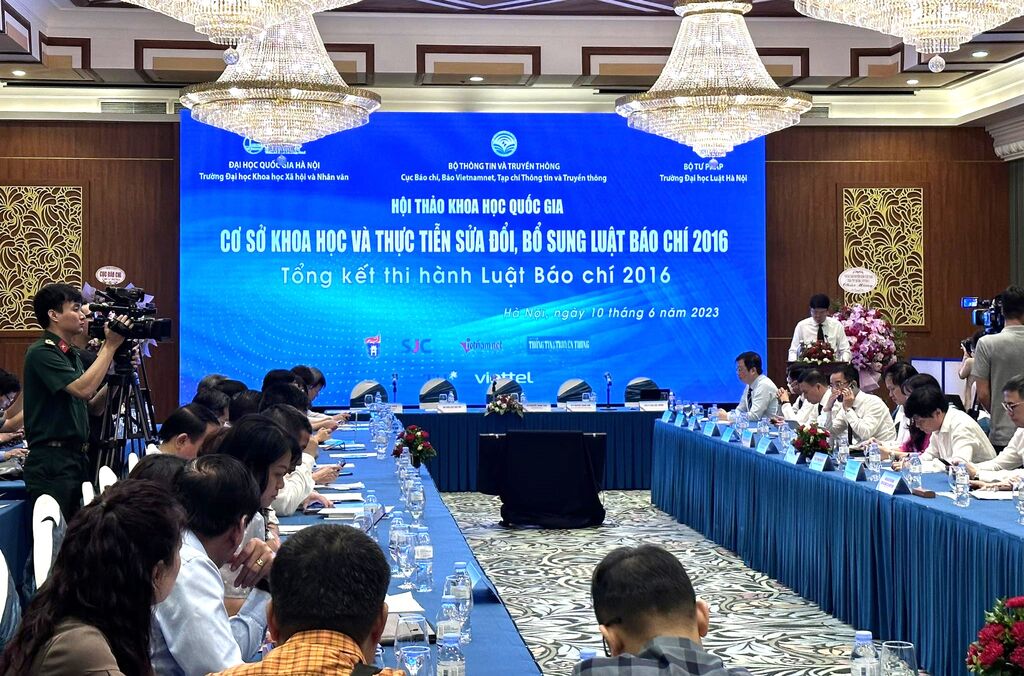 L'Université des sciences sociales et humaines relevant l'Université nationale de Hanoï en collaboration avec le ministère de l'Information et des Communications et l'Université de droit de Hanoï ont tenu le 10 juin, à Hanoï, une conférence scientifique nationale "Base scientifique et pratique pour amender la loi sur la presse 2016". Il s'agit d'une conférence pour examiner la mise en œuvre de la loi sur la presse de 2016, l'un des programmes de travail pour 2023 du ministère de l'Information et des Communications visant à la modifier et la compléter.
