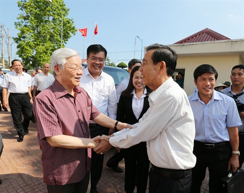 | Nguyên Phu Trong (gauche) rencontre le 17 juin des autorités et des habitants du district de Dât Do, province de Bà Ria-Vung Tàu. |