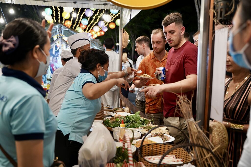 | Touristes au marché nocturne de Côn Dao, province de Bà Ria-Vung Tàu. |
