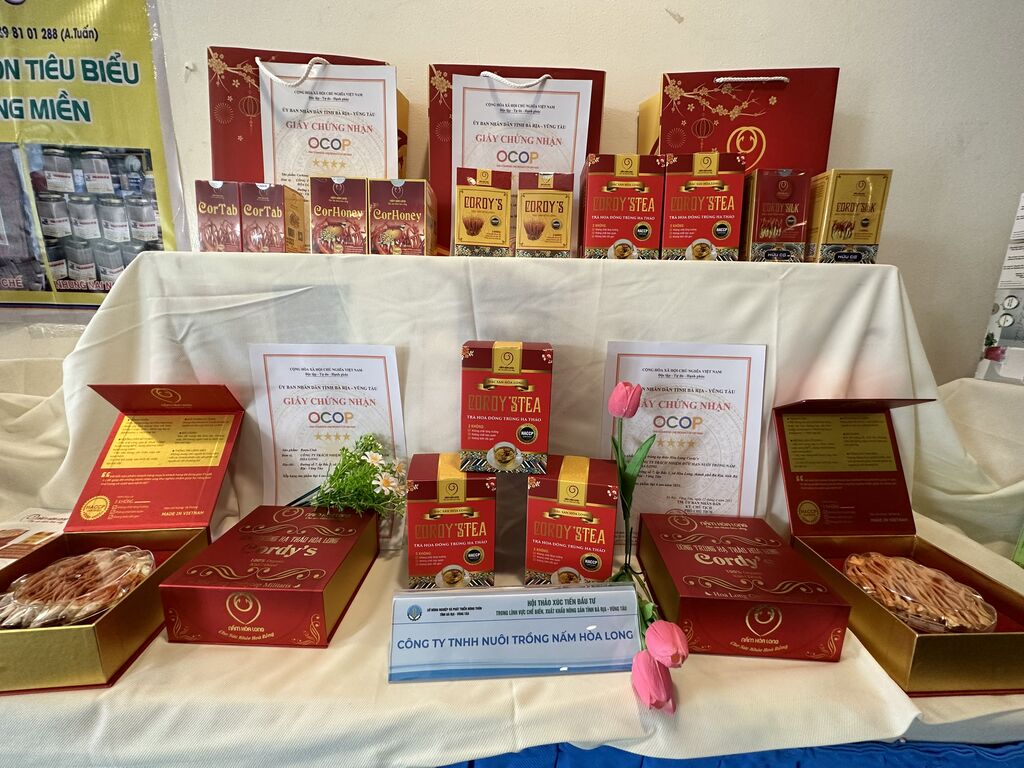 | Des produits certifiés OCOP de Bà Ria-Vung Tàu exposés en marge du colloque. |