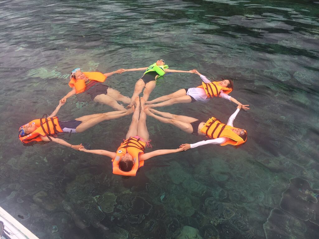| Des touristes plongent dans l’eau fraîche de Côn Dao. |
