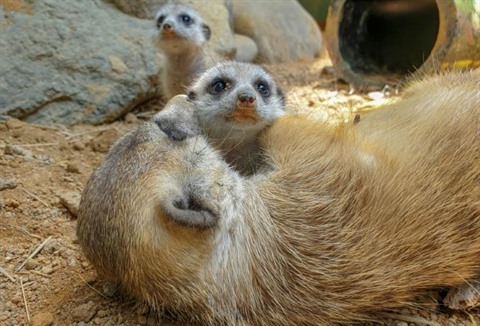 | Deux bébés suricates au Bioparc Ukumari, à Pereira en Colombie, le 7 août. |