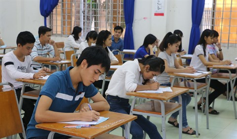 | Des candidats lors de l’examen national de fin d’études secondaires de 2016 dans la province d’An Giang (Sud). |
