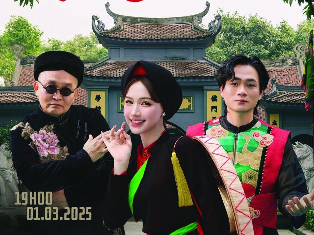 | L’“Artiste Émérite” Xuân Hinh (gauche), Hòa Minzy et Tuân Cry dans le clip vidéo Bac Bling. |