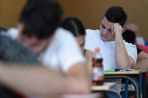 | Épreuve de philosophie lors de la session 2019 du baccalauréat, au lycée Louis-Pasteur de Strasbourg, le 17 juin 2019. |